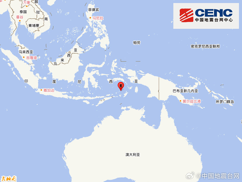 印尼班达海发生6.4级地震 震源深度150千米印尼班达海发生6.4级地震 震源深度150千米