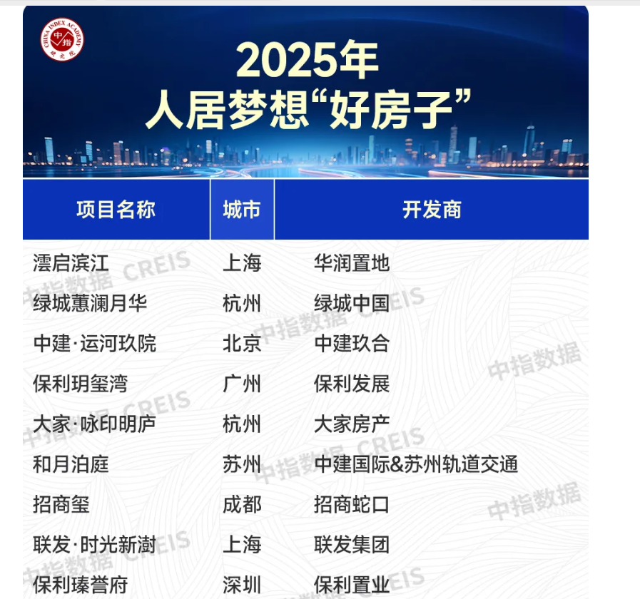2025年,为进一步促进房地产行业高质量发展,中指研究院启动2025年人居梦想“好房子”研究与优选工作,最终在全国范围内优选出70个『2025年人居梦想“好房子”』项目。而保利瑧誉位列其中!